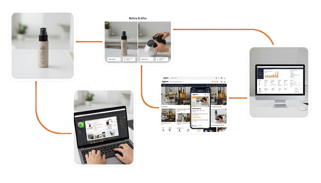 Each A+ module is crafted to align perfectly with your brand identity and Amazon’s content guidelines. From feature-rich visuals to comparison charts and lifestyle imagery, we build content that educates, engages, and persuades — helping your listings rank higher, stand out, and drive more sales.